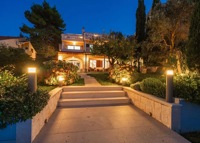 På Vacation House Cavtat Villa hittar du en solig uteplats med utsikt över trädgården. Vacation House Cavtat Villa erbjuder sina besökare soldäck, grillar och trädgård.
